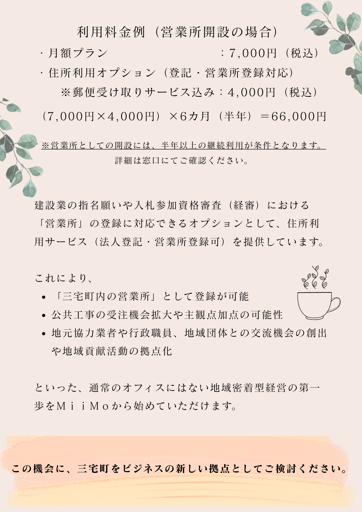 といった、通常のオフィスにはない地域密着型経営の第一歩をMiimoから始めていただけます。